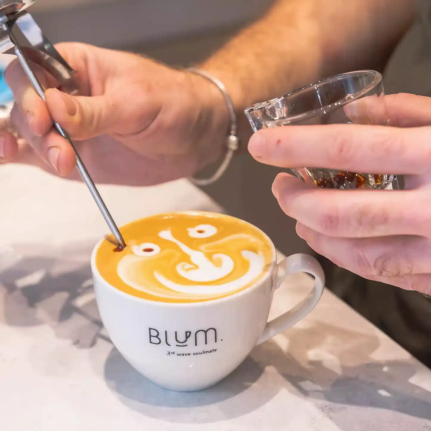 ‘Blum your day/ Gününüzü çiçeklendirin’ sloganımız ile, fair- trade ve nitelikli kahve çekirdeklerinden yaptığımız kahveyi en yüksek standartlarda üçüncü nesil yöntemlerle sunmaktayız. Espresso bazlı içeceklerden, yeni nesil demleme yöntemlerine ve Blum imzalı spesiyallere kadar geniş bir kahve menüsünün yanı sıra nitelikli çaylar, smoothie/milkshake gibi ürünleri içeren bir içecek menümüz bulunmaktadır. Espresso bazlı içecekler için single origin kahve çekirdekleri kullanılırken, sütlü içecekler için Blum’a özel bir blend kullanmaktayız. Gerek demleme gerekse espresso içecekler için organik kahve çekirdekleri alternatifleri de mevcut.